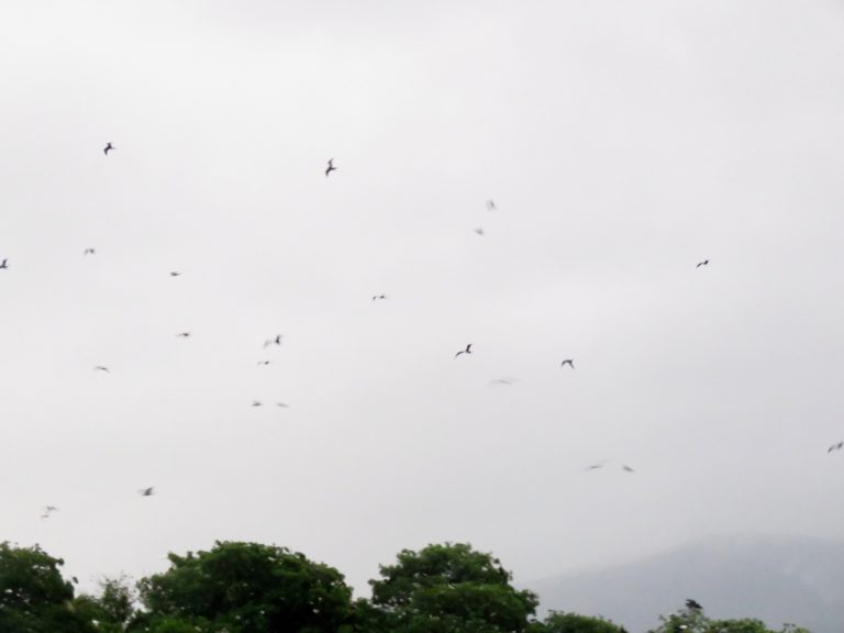The anchorage is actually pretty and pleasant. We are surrounded by mangrove trees, nice villas, hundreds of birds – pelicans, white herons, frigates and sea gulls, but most notably are the huge jellyfish in the water, some more than 40 cm in diameter so no swimming for us. There is even a weak WiFi signal that, depending on boat direction, allows us to get weather updates and use the internet. And last advantage of this anchorage – it is free.