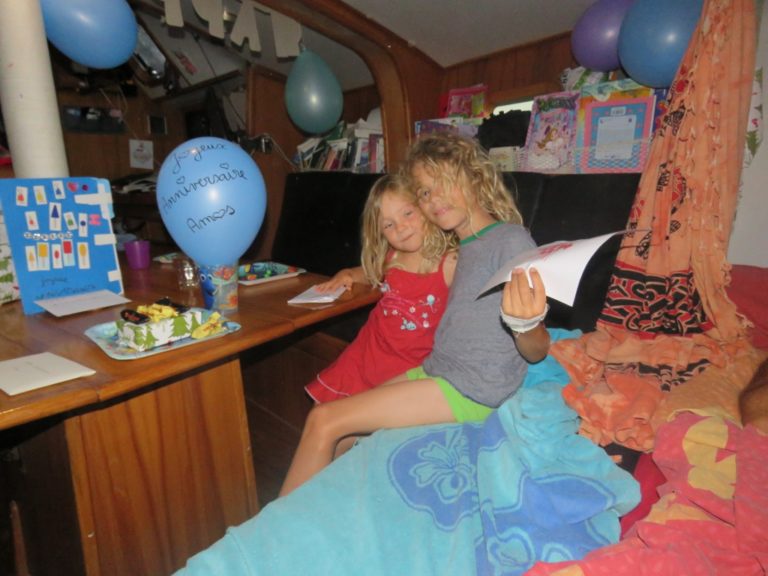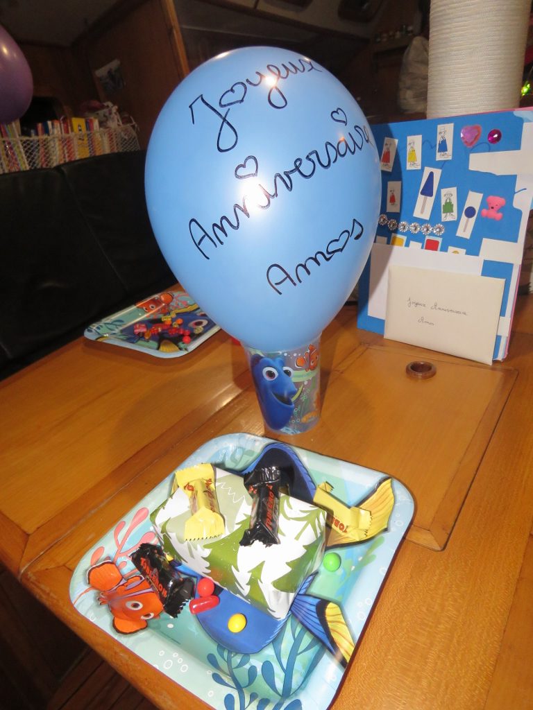 Mon coeur, pour ta fête d’anniversaire, tu voulais jouer avec les copains, tu voulais une chasse au trésor, des cadeaux et un gâteau au chocolat. Les spaghettis bolognaise dont tu rêvais ont été momentanément remplacées par un repas saucisse, pâtes… Les magasins des Bahamas ne permettant pas toujours de trouver tout ce que nous voulons….Pas grave ce n’est que partie remise.