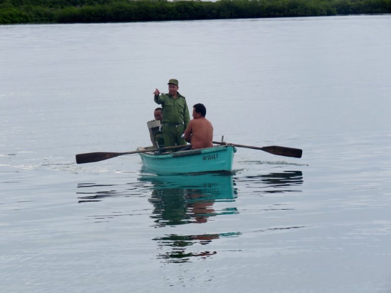 In every bay we stop the guarda-frontera, the Cuban coastguard, pay us a visit. They either row themselves, hitch-hike with a fisherman or ask us to come and pick them up. Wearing different uniforms at different ports they always come barefoot and never have a pen with them. They are filling the same paperwork and ask the same questions – what engine we have and what colour is our hull and how many litres of water we carry. Sometimes they ask for a shot of rum, sometimes for coffee with milk but they are always very friendly and polite.