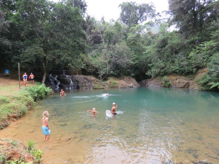 Et pour vous détendre après tout ce sérieux, encore quelques photos de notre excursion avec nos copains de Kattami. Baignade rafraichissante dans une piscine naturelle. Très sympa, juste dommage qu’en même temps nous avions la douche….! Et quand il pleut, il PLEUT !