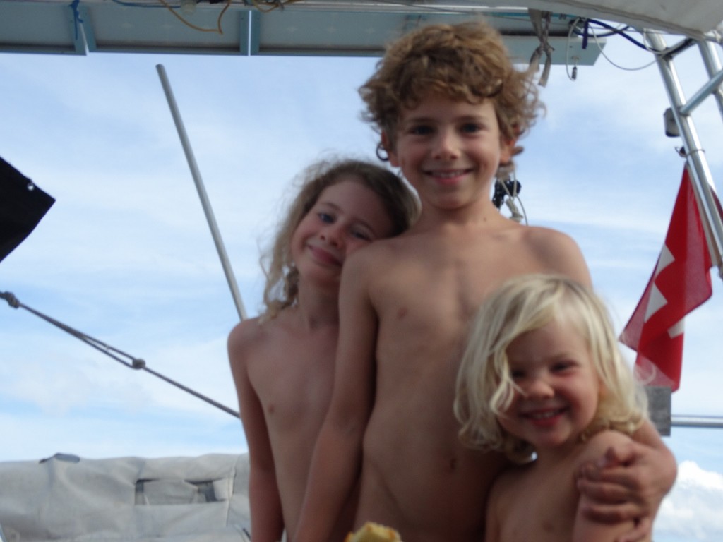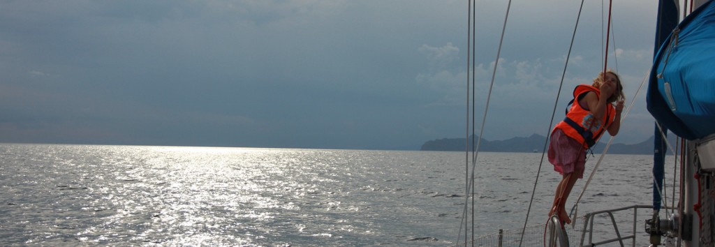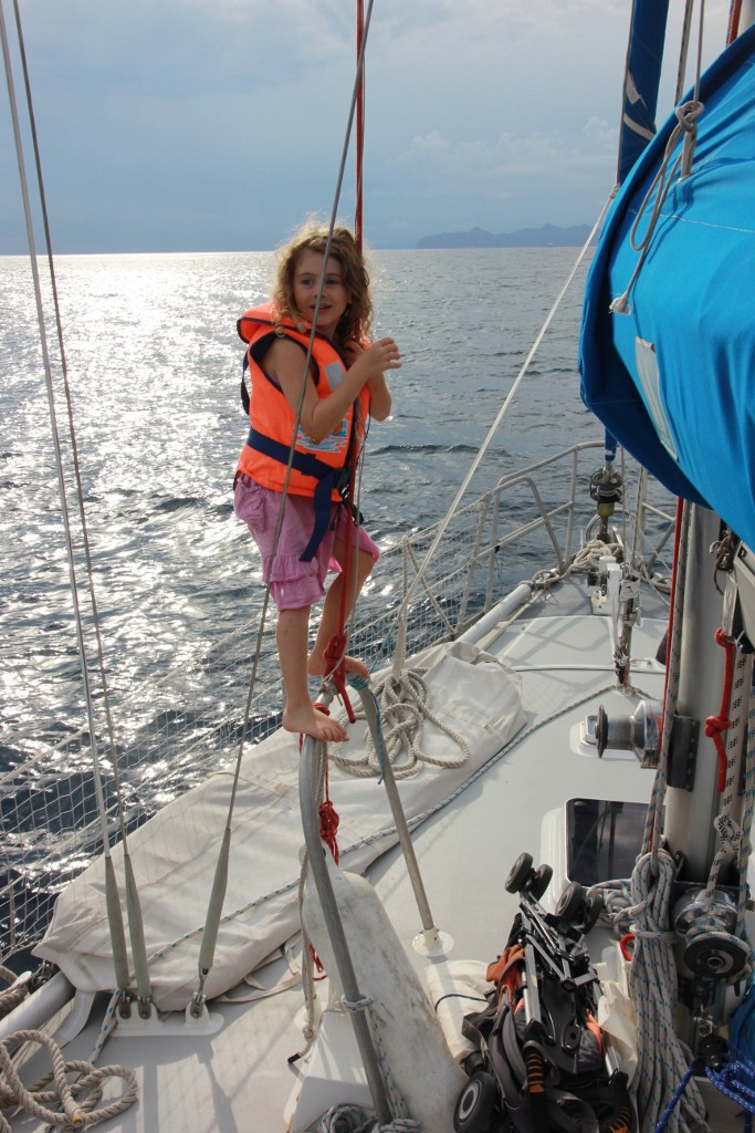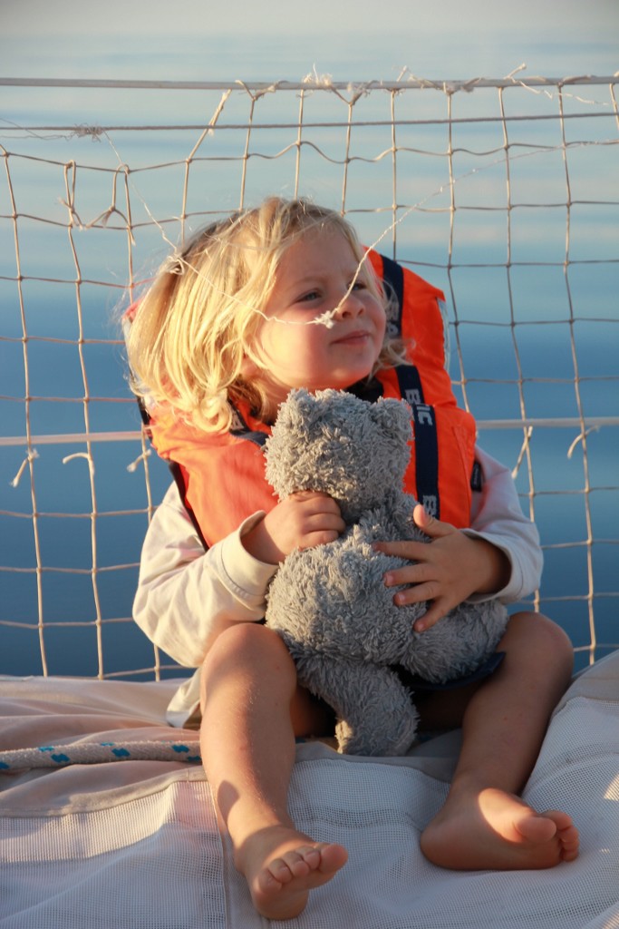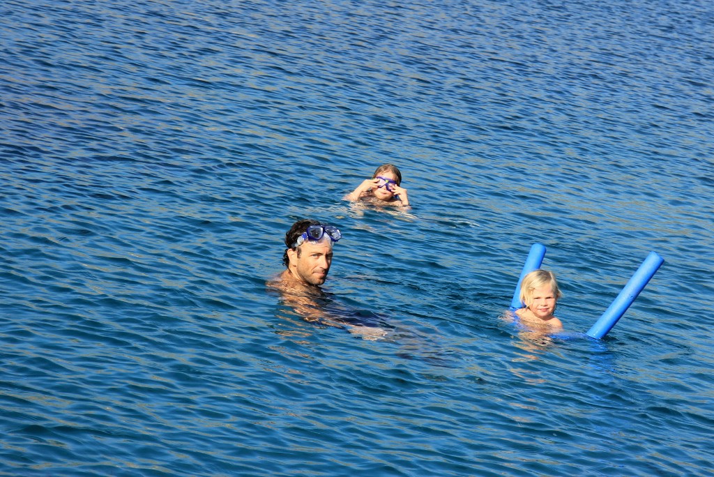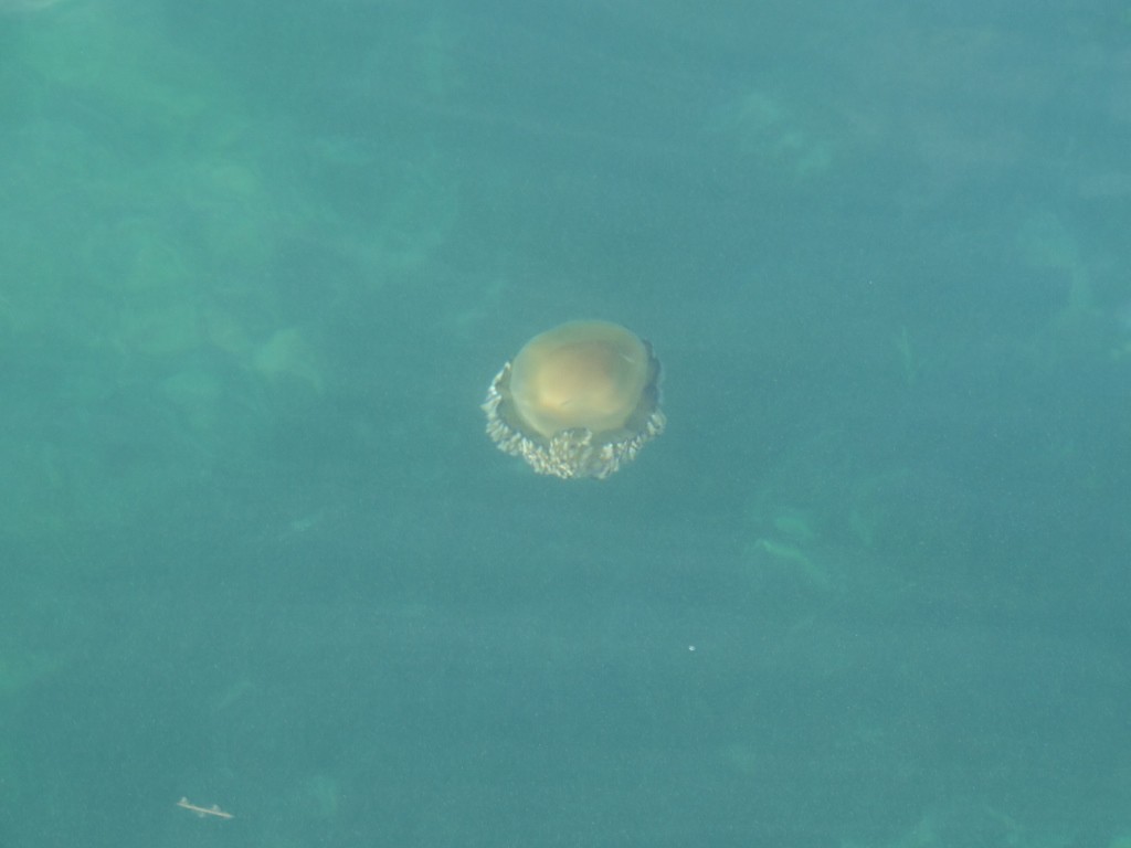 Avec l’automne nous voyons arriver les premières méduses et avant chaque bain les enfants font d’eux-mêmes le tour du bateau pour vérifier que la voie est libre. Une fois sous l’eau ils inspectent régulièrement les alentours et préviennent à grands cris si une méduse approche.