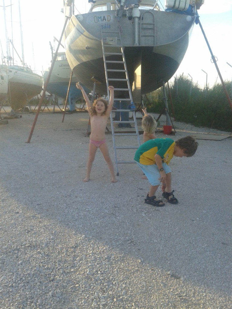 Et puis l’arrivée, enfin, avec comme d’habitude pas vraiment de temps pour ressentir… Il faut débarasser la voiture, nourrir la petite bande, voir le bateau crouler sous des tonnes de sacs lidl, ikea et j’en passe et surtout surtout se demander comment mais comment pourrons nous mettre TOUT CA dans ce petit espace… Il nous semblait pourtant nous être débarassé de quasiment toutes les choses qui meublaient notre maison et là il en reste encore de trop…