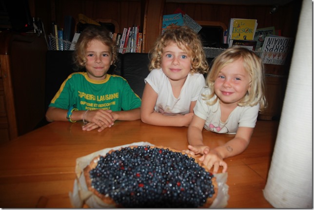 L’autre bonne nouvelle c’est que tout au long de notre chemin la forêt est remplie de myrtillers qui ont été épargnés par les daims, et du coup non seulement nous remplissons nos petits estomacs affamés, mais en plus nous en ramassons tellement que nous ferons une belle tarte en arrivant! mmmmhhh! Bon pour la petite histoire Didi réussira quand même trois fois à s’arrêter dans une fourmillière pour ramasser ses baies…. A chaque fois, sous des hurlements stridents il faudra la déshabiller complètement et décrocher ces tenaces petites bêtes de ses habits, de ses cheveux, de ses chaussures……