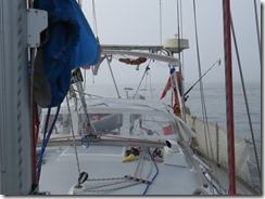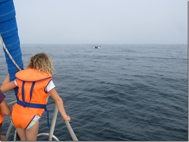 Bref, nous sommes le 8 septembre et nous devons continuer notre route vers le sud. La traversée vers Provincetown devrait durer environ 10 heures. La mer est calme, le vent quasiment inexistant au contraire de son copain le brouillard qui lui nous enveloppe et nous serre de près. Ca ne nous dérange pas vraiment si ce n’est que sur cette route vers Provincetown nous devrions voir des baleines! Les heures passent et je fais le guet attentivement pour apercevoir ….peut-être …et enfin…. une baleine à bosse.
