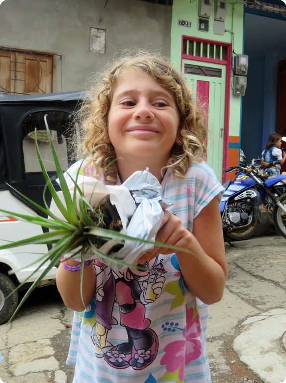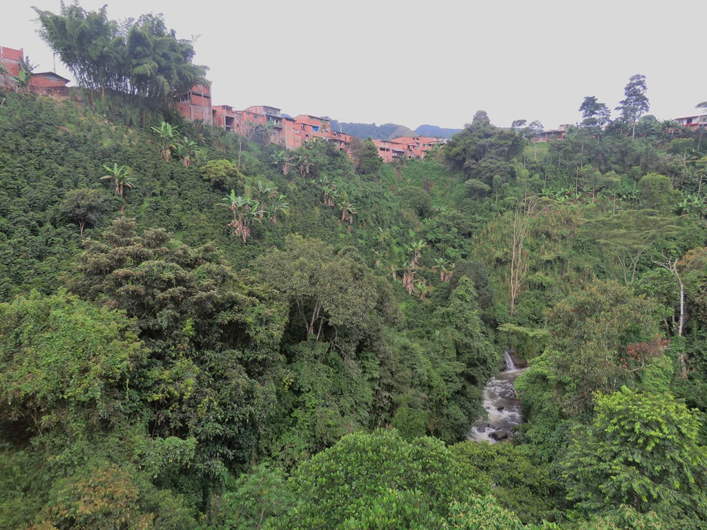 Back on the main road to Medellin, it’s late, we are tired. A sign by the side of the road next to a big gate – hotel. We pull over. The place looks very pretty – sitting on the cliffs looking down the river and the forest, They also have a swimming pool, a sauna, Jacuzzi, and a playground. The view or the river from our spacious room is amazing. The view from the Jacuzzi is breathtaking. Probably would be over our budget we thing. But to our big surprise its actually one of the cheapest places we stayed in Colombia – 100000 Colombian pesos, about 35 USD. All of a sudden we feel better for not making it to Jardin.