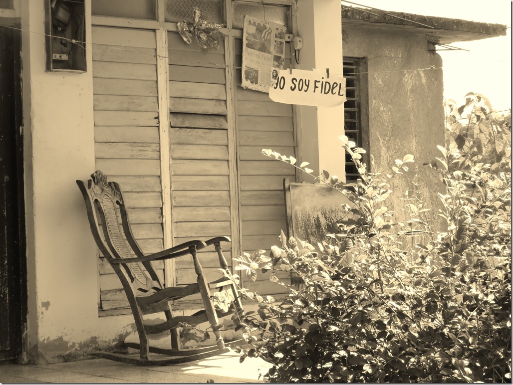 Yo soy Fidel. Amazingly, the Cubans do like Fidel. For them he is still the saviour. A terrace on Cayo Grandma near Santiago de Cuba.